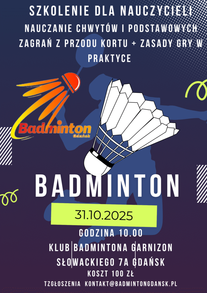 Jesteśmy organizatorem turnieju Badmintona z okazji Dnia Niepodległości.Turniej obędzie się 08.11.2025 w Klubie Badminton Garnizon w Gdańsku